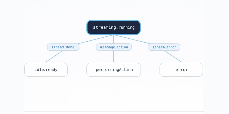 In our chat UI refactor, that clarity mattered a lot. The model was fairly large (multiple parent/child states, dozens of event types, and roughly 50 transitions), but it made complexity visible instead of hiding it.